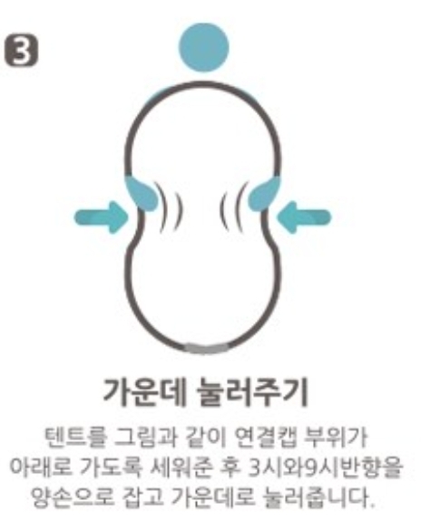 둥글게 모은 원형 폴대를 양쪽에서 살짝 눌러주면,
