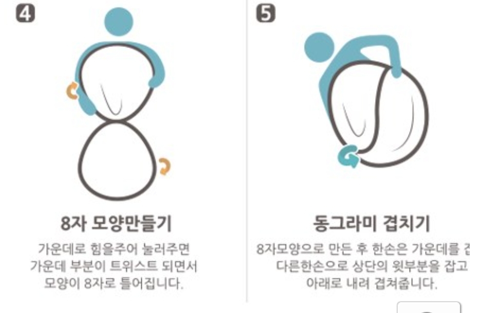 이때 탄력을 이용해서 비틀며 바로 반으로 접습니다.