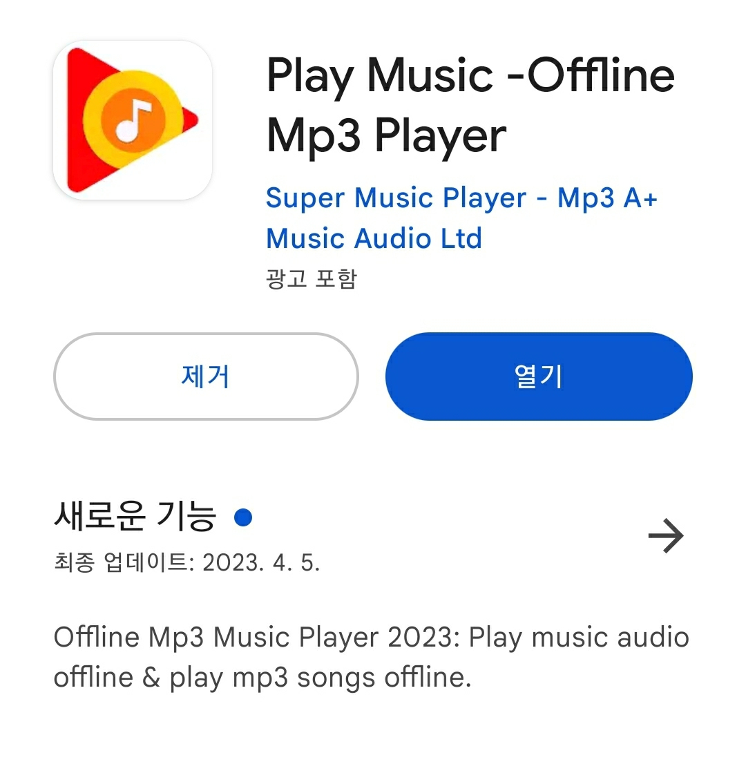5) 저는 이 '플레이 뮤직 오프라인 mp3 플레이어'를 사용중인데, 광고도 안뜨고 편하게 사용 중입니다.