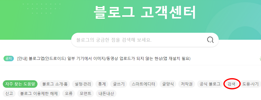 3) 블로그 고객센터에서 [검색] 선택