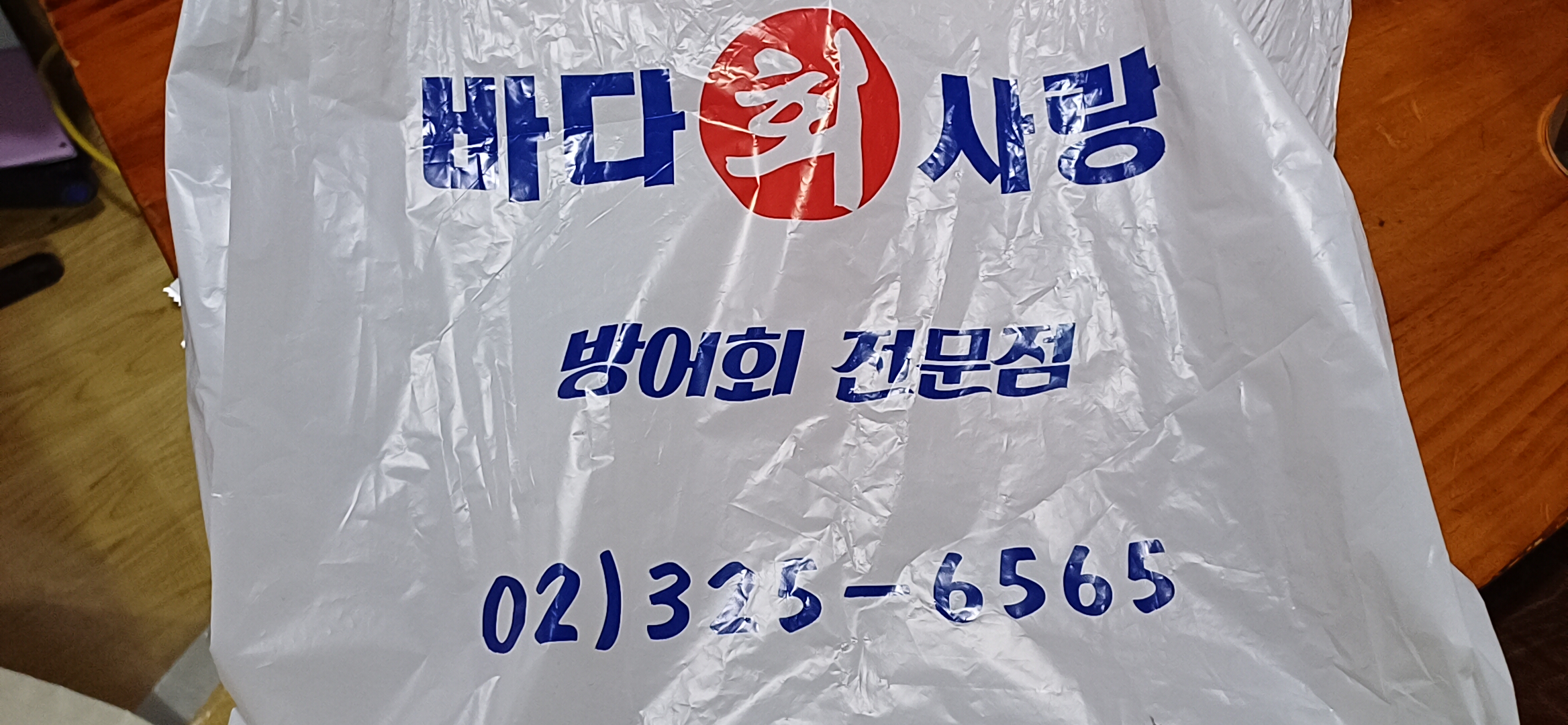 홍대역과 망원역 사이에 있는 바다회사랑 2호점에서 대방어회 2인분을 포장하여 신나게 집에 왔어요.