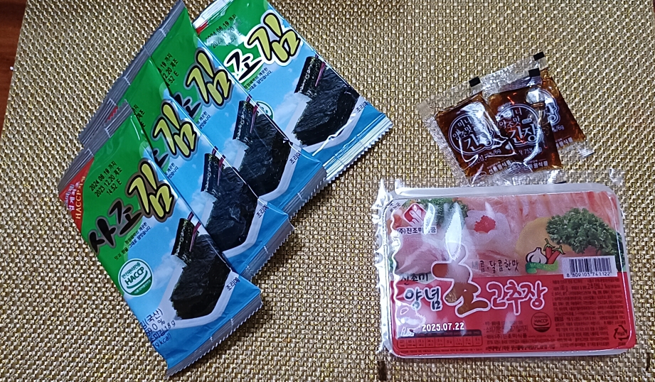 김 4개, 초고추장 1개, 간장 3개,
