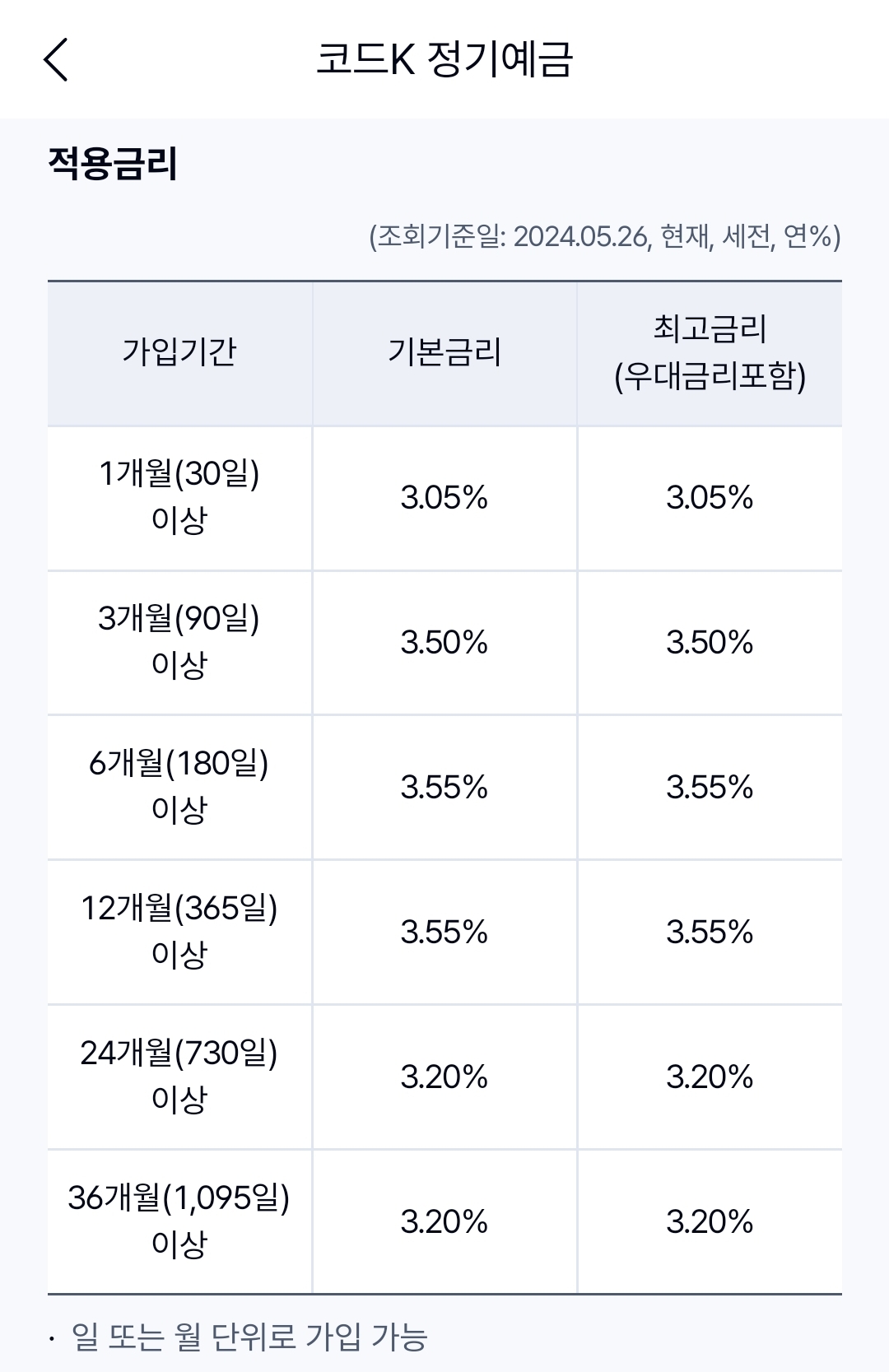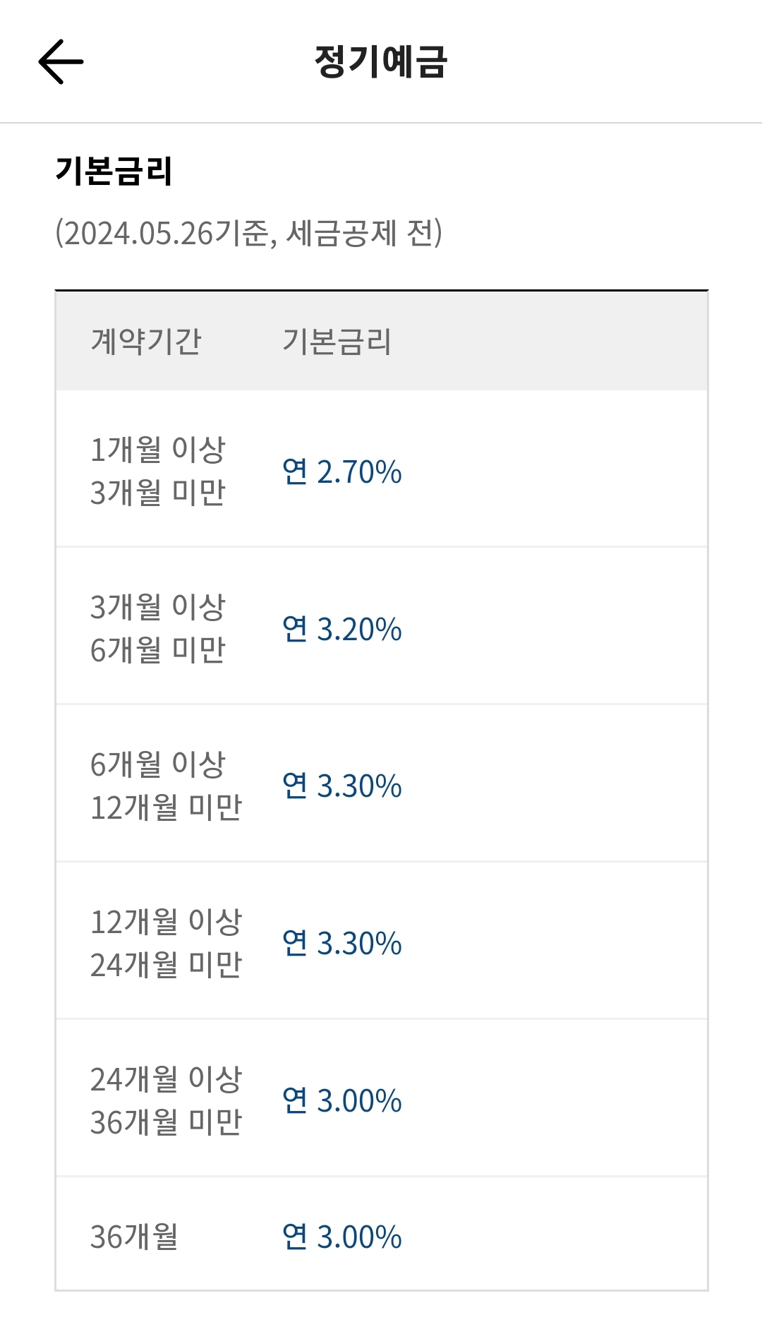 정기예금 금리가 세 은행 중 가장 높습니다.