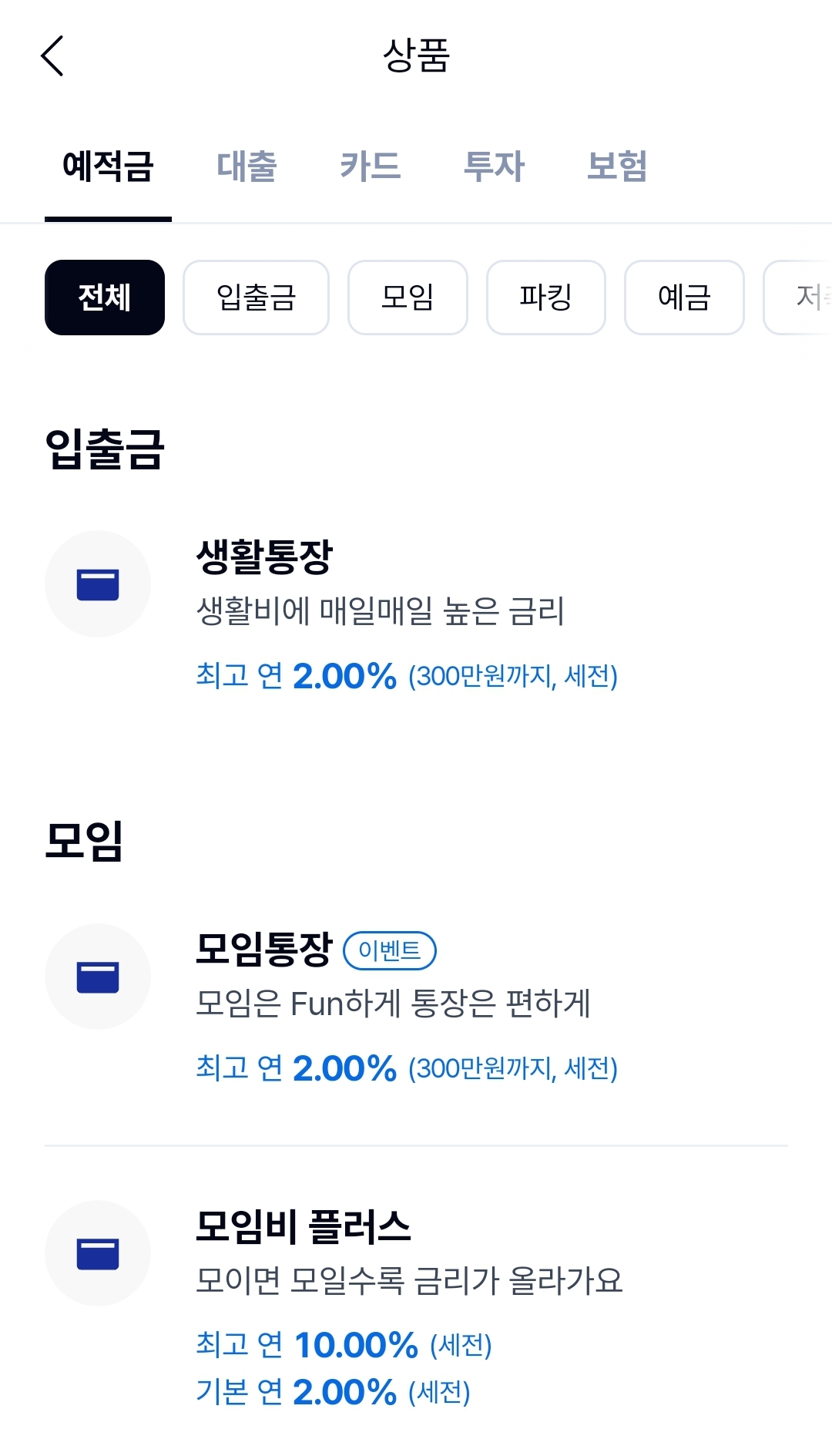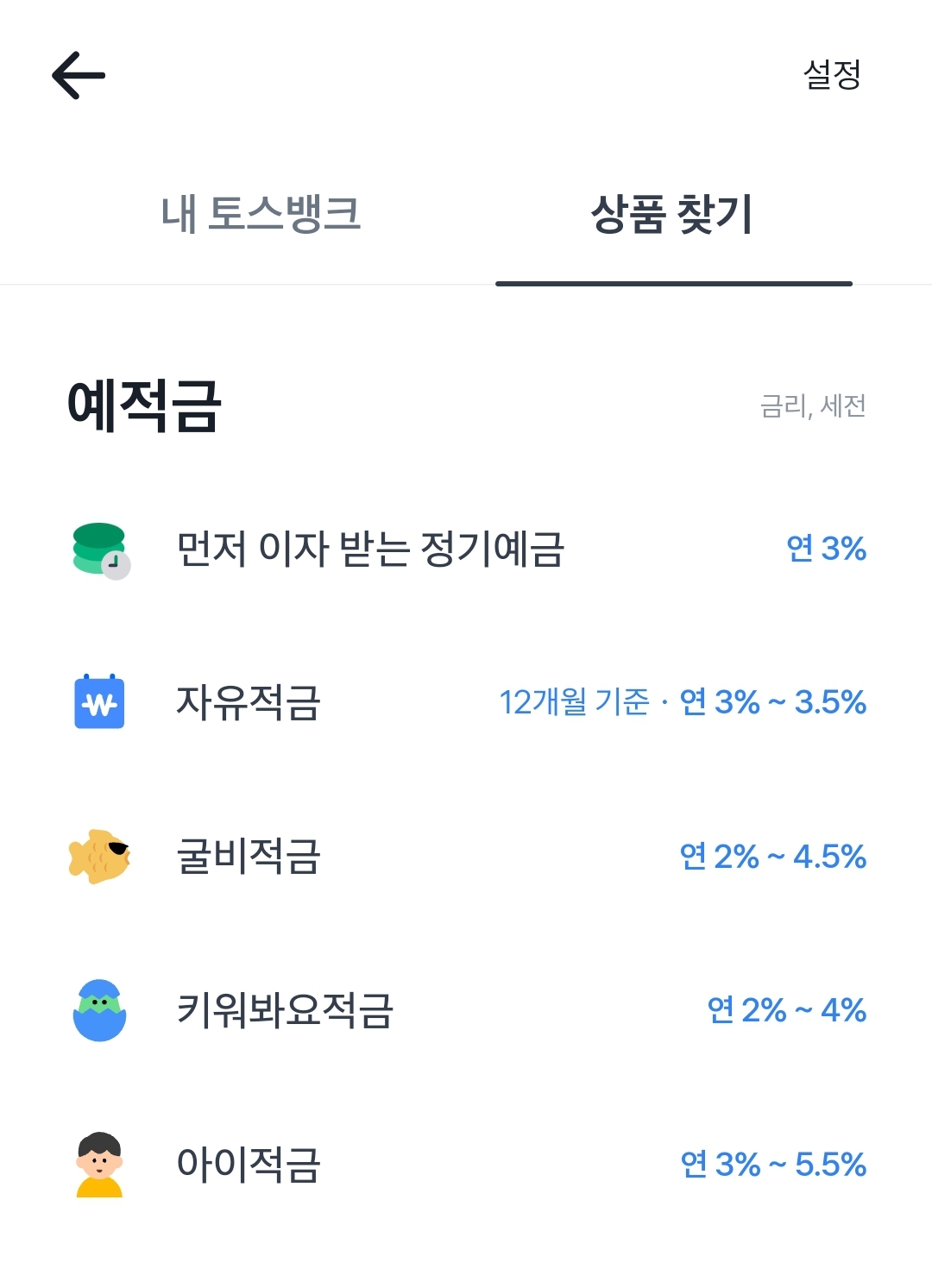 토스 뱅크는 특이하게도 예금 상품의 경우