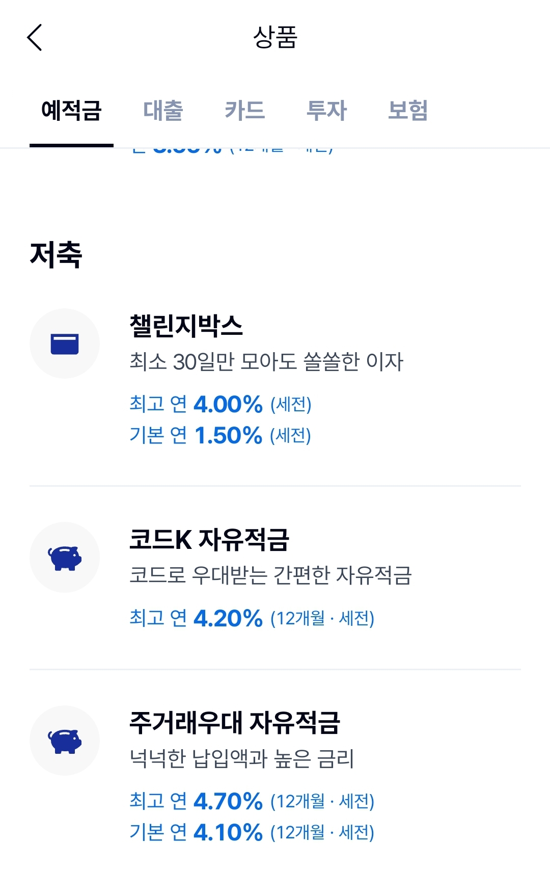 예금, 적금 상품을 알아보다가 k뱅크, kakao뱅크, 토스