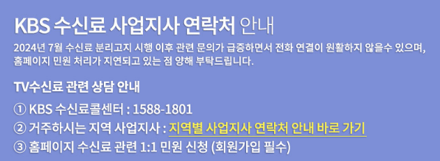 KBS수신료 상담 콜센터 (1588-1801)로 전화하거나