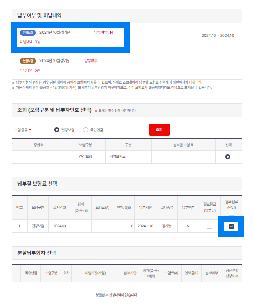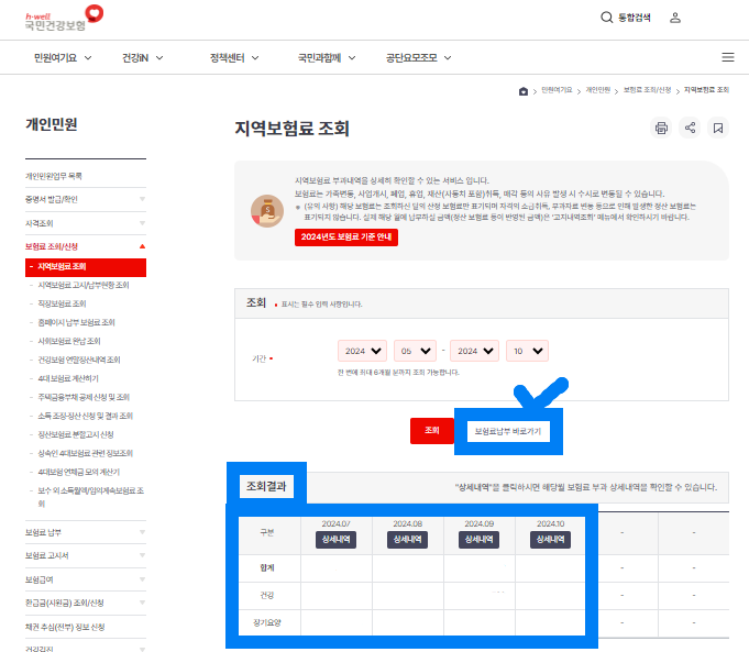 (지역보험료, 직장보험료 모두 조회 가능)