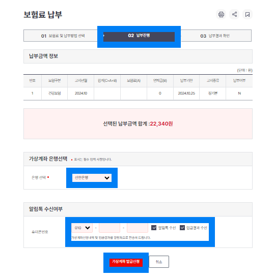건강보험은 가상계좌 발급 시
