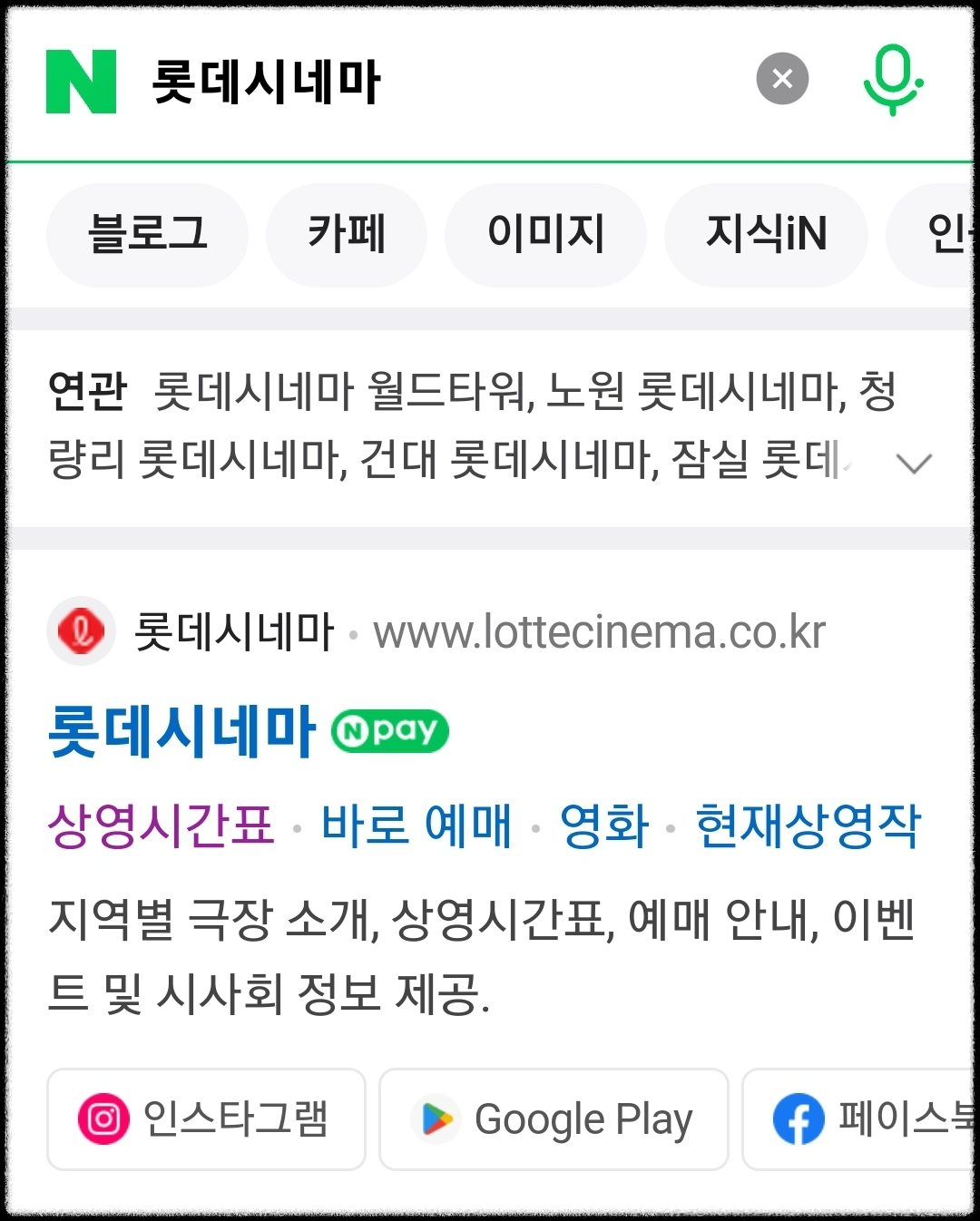 검색창에 '롯데시네마' 영화관명을 검색하면