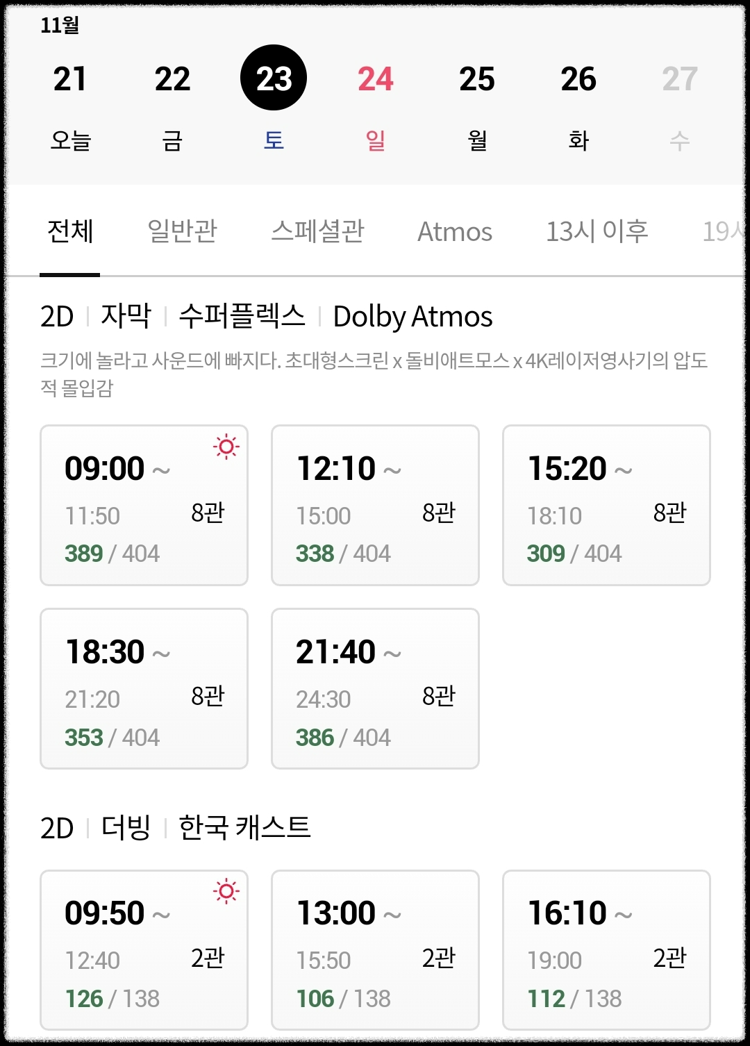 2D, 자막,수퍼플렉스, Dolby Atmos