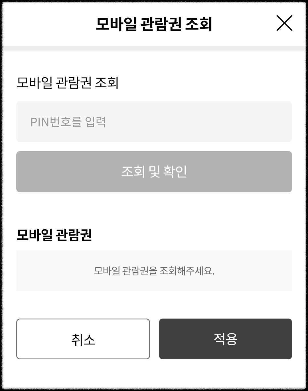 '모바일 관람권 조회' 란에