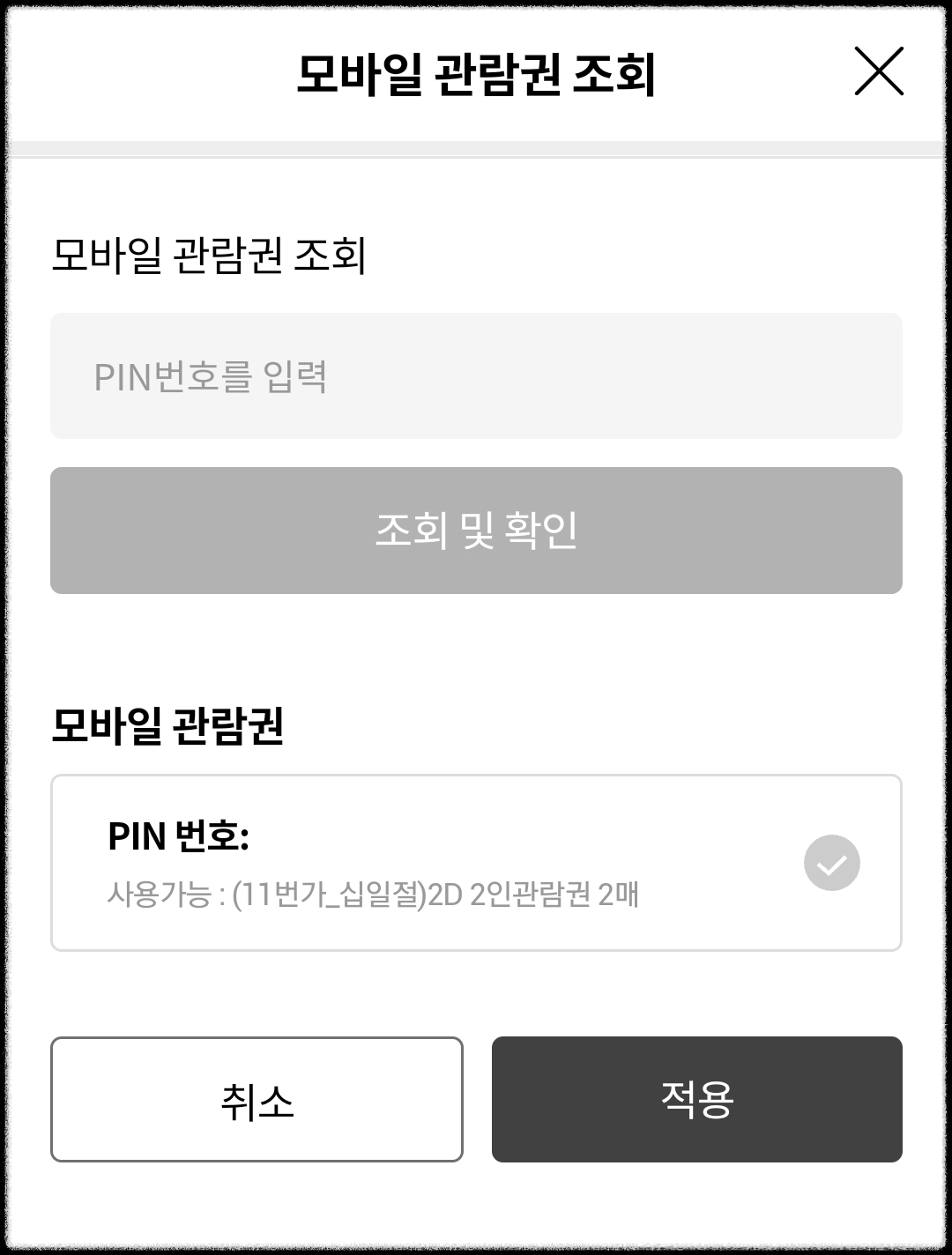 8. 모바일 관람권 PIN번호 등록하기