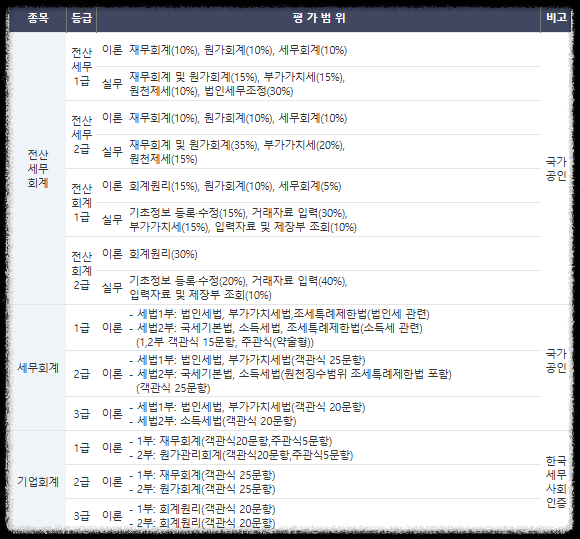 그 중 한국세무사회에서 진행하는전산회계, 전산세무 시험에 대해 정리합니다.