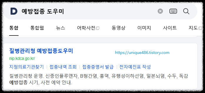 ① 검색창에 '예방접종 도우미'를 검색하면,