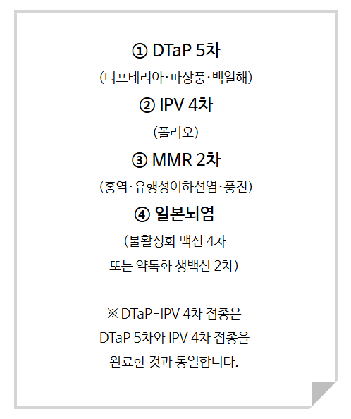 필수예방접종 4종을 완료할 것을 권장합니다.