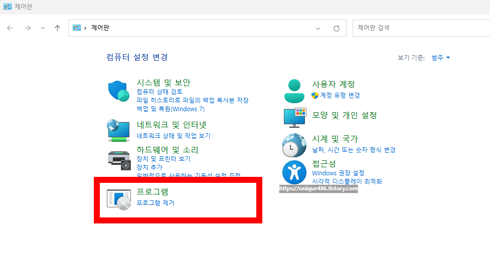 [프로그램 제거]를 클릭합니다.