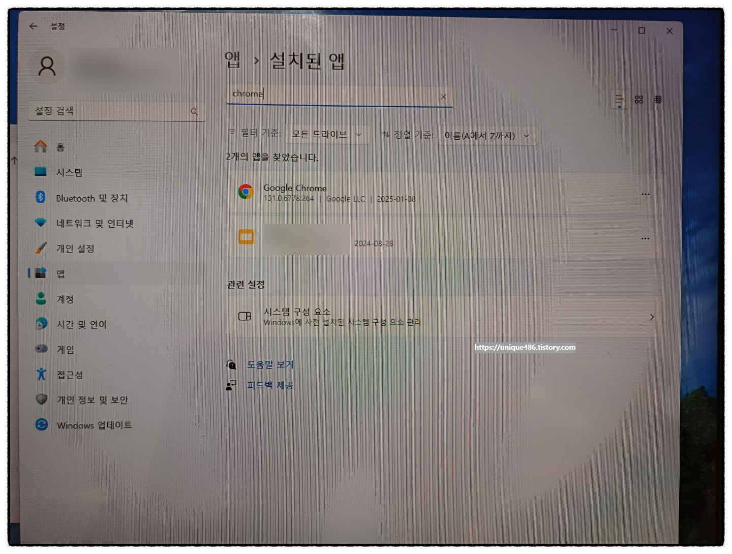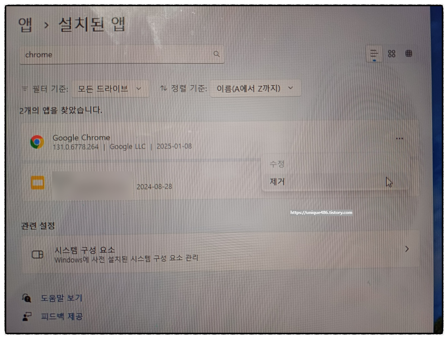 1. 크롬 제거 방법1 : 설정 -> 앱 제거