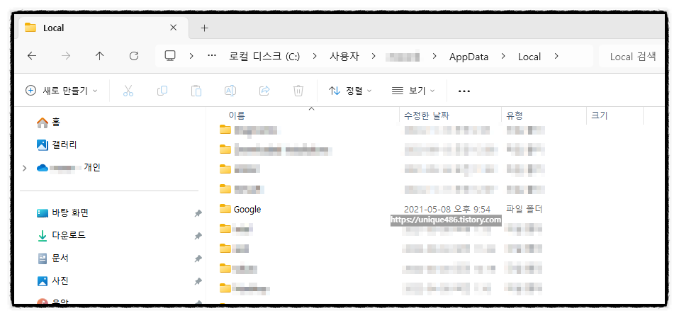 ① AppData > Local > Google 폴더를 찾습니다.
