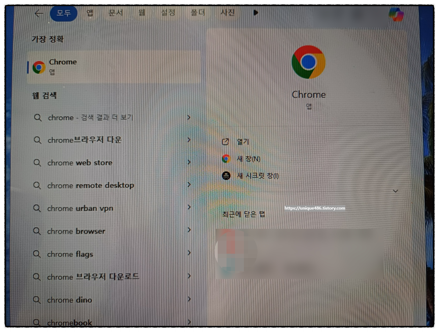 컴퓨터는 재부팅했는데, Chrome 이 있습니다.