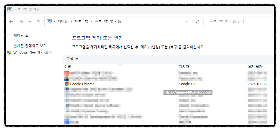 2. 크롬 제거 방법2 : 제어판 -> 프로그램 제거