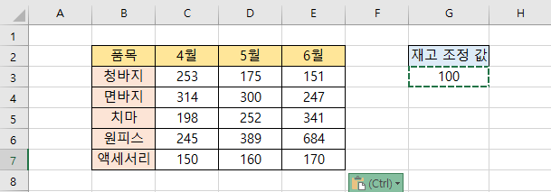 입력된 데이터에 일괄적으로 특정한값을 빼거나 더하여 붙여넣기를 해보겠습니다.